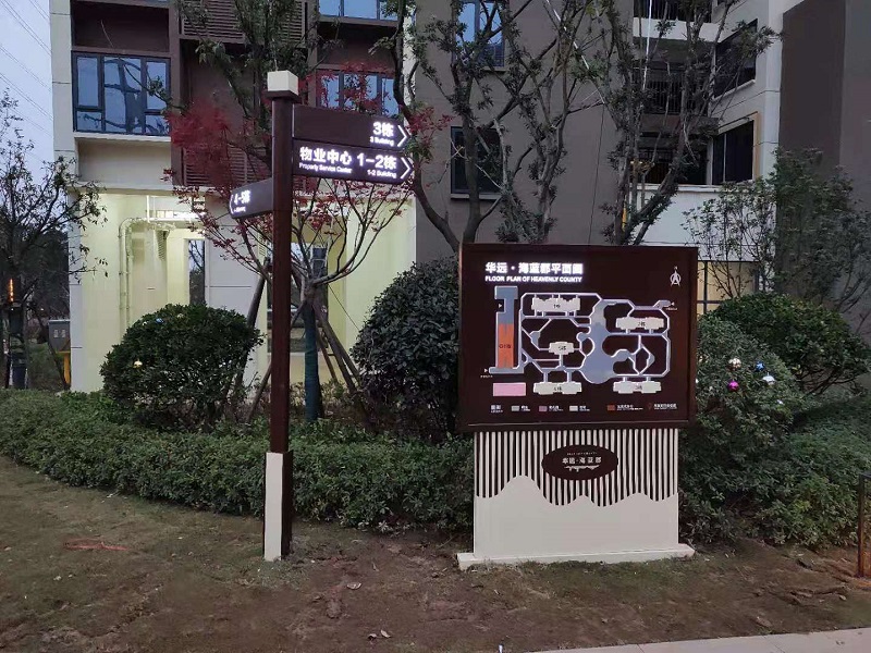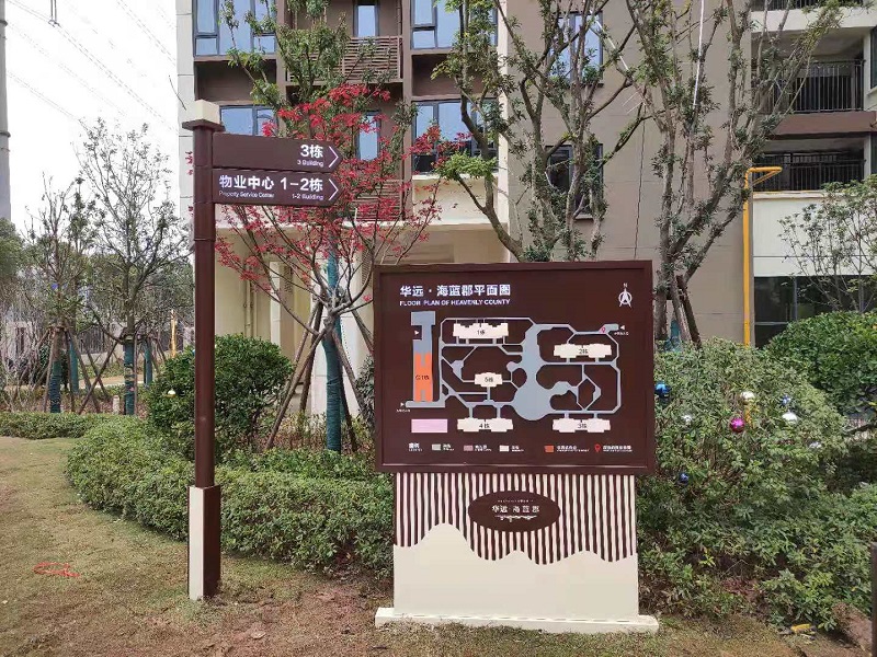 服務內容:房地產標識導向系統設計制作(總導覽圖、精神堡壘、垃圾桶、停車場指示牌、溫馨提示牌、樓棟牌、門牌等)